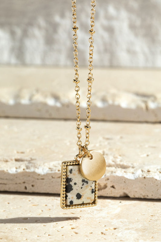 Square Semi Precious Stone Pendant Necklace