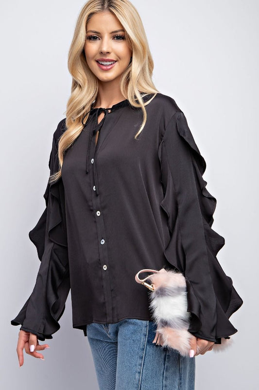 Satin Ruffle Sleeve Top