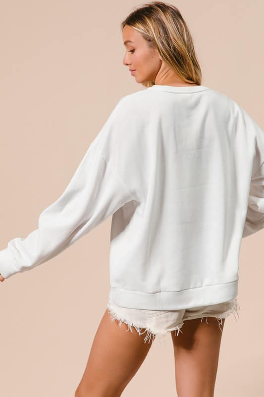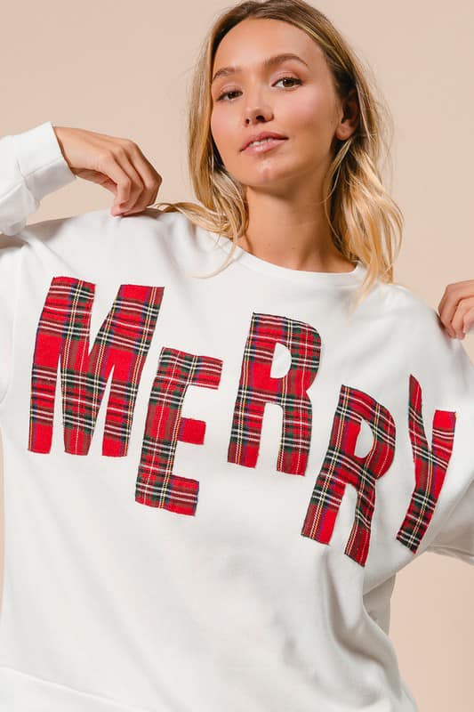 This adorable white sweatshirt has Christmas plaid letters embroidered on front so everyone knows how “merry” you are!!!