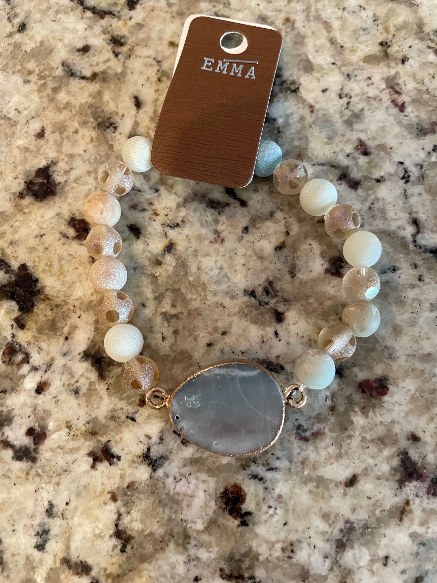 Natural stone bracelet with stone pendant 1 inch; stretch fit bracelet; colors may vary;