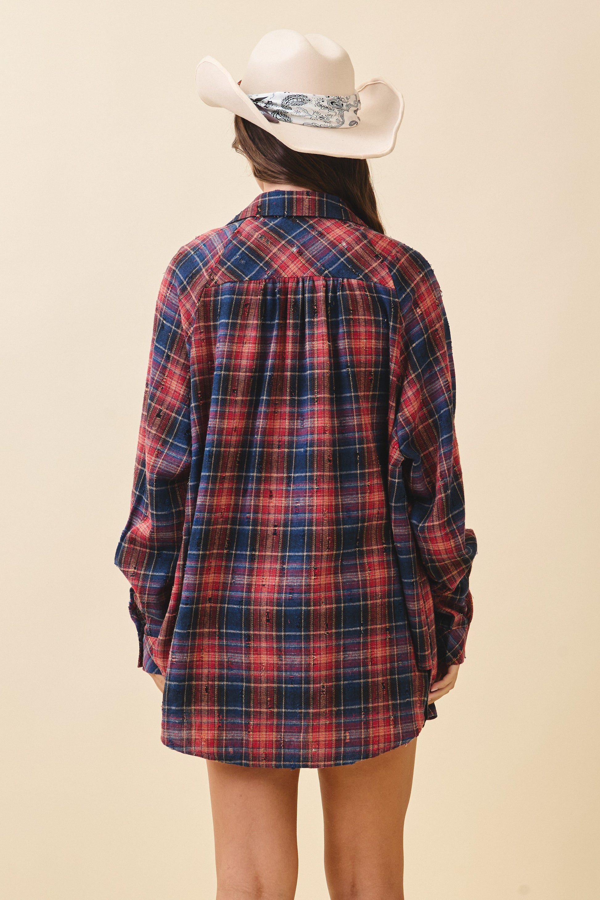 Our red and navy flannel shirt has the prettiest western pattern and is one of my favorite flannel shirts, ever!!!! Perfect with denim and boots!!!