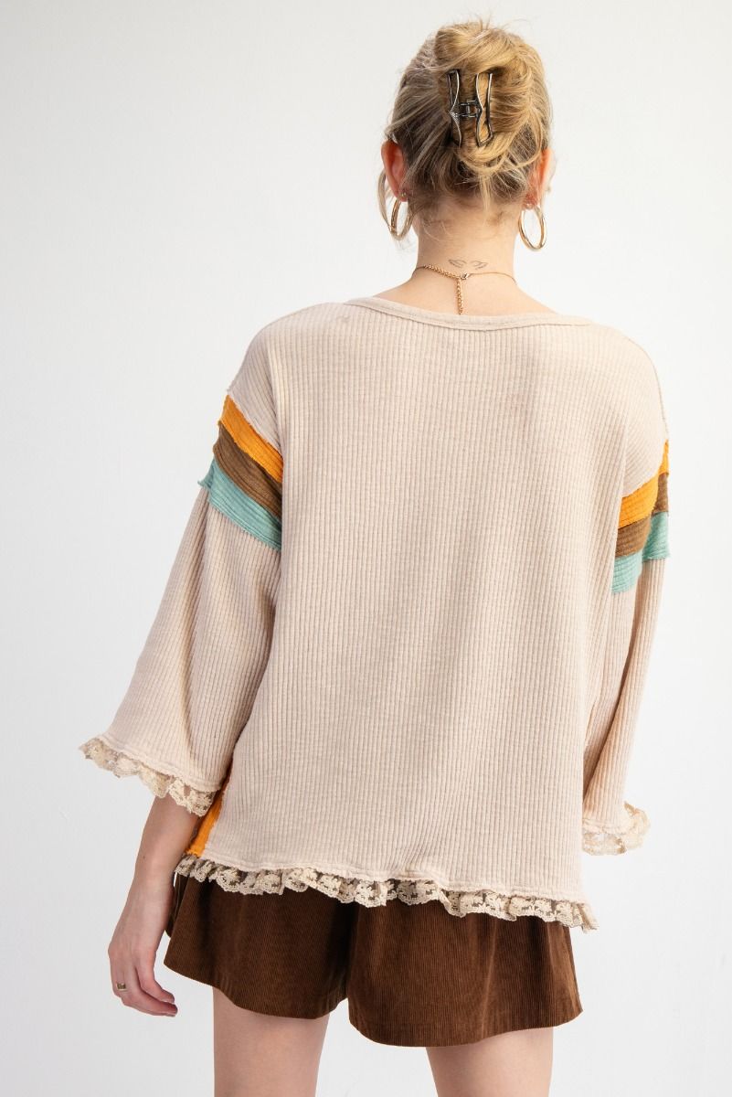 This striped top with lace trim is so flirty and feminine!!! I love the colors of the stripes! The side slits give this the perfect fit!!