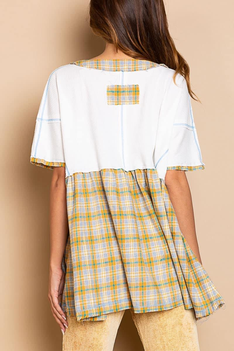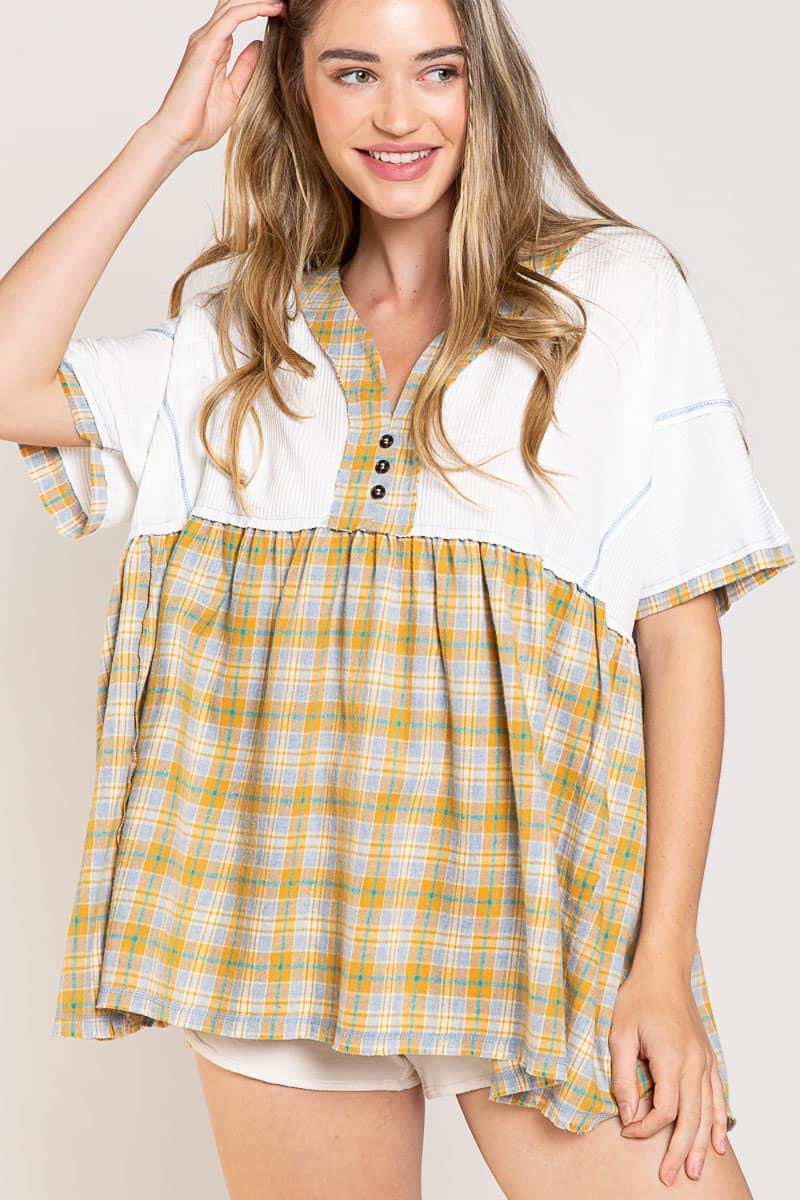 This babydoll top is the perfect fit and the cutest mix of fabrics!!